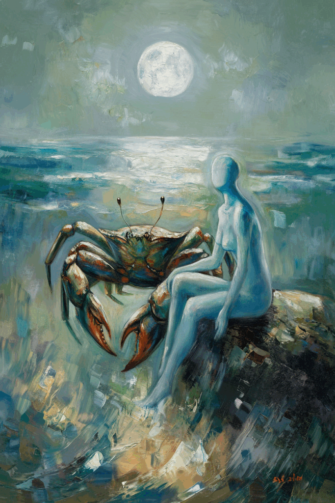 Au bord de l’océan, sous le regard lunaire,Elle veille, silhouette aux contours d’opale.Près du crabe gardien, dans la nuit solitaire,Son âme comme la mer, profonde et ancestrale. Femme-Cancer, ton corps est un temps d’argent,Où résonnent les marées de ton cœur protecteur.Tes yeux sont des lagunes au mystère changeant,Miroirs où se reflète ton monde intérieur. La […]